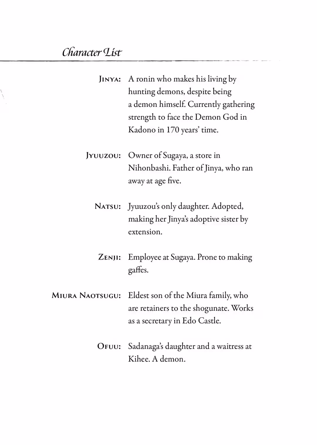 Come to think of it, the streetwalker had brought up the black ships that came to Uraga. The shogunate seemed unable to deal with foreign powers. The Tokugawa’s power was slowly waning, and the country was on the verge of an era of upheaval. Even without demons, the people of Edo had enough to worry about.