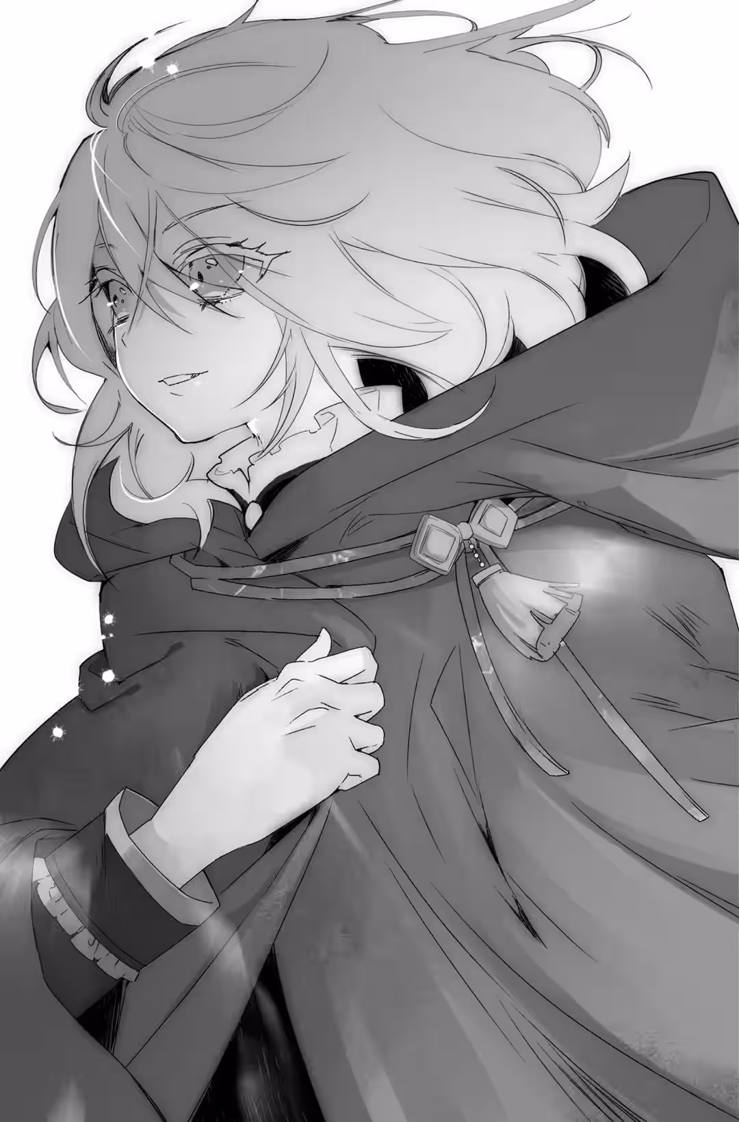 “What are they thinking, setting off an explosion in the middle of the city?!” Ras muttered to himself. He spun around and looked in the direction where the fireball had come from. There, on the rooftop of the tavern Ras had just exited, stood a hooded woman—the silver-haired figure, Kanalayka’s companion. Ras glared at her.