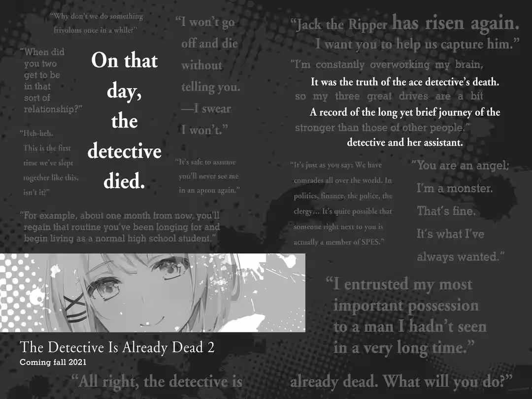 All right, now that we’ve gotten the foreword of the afterword out of the way: Once again, thank you very much to all the readers who picked up The Detective Is Already Dead.