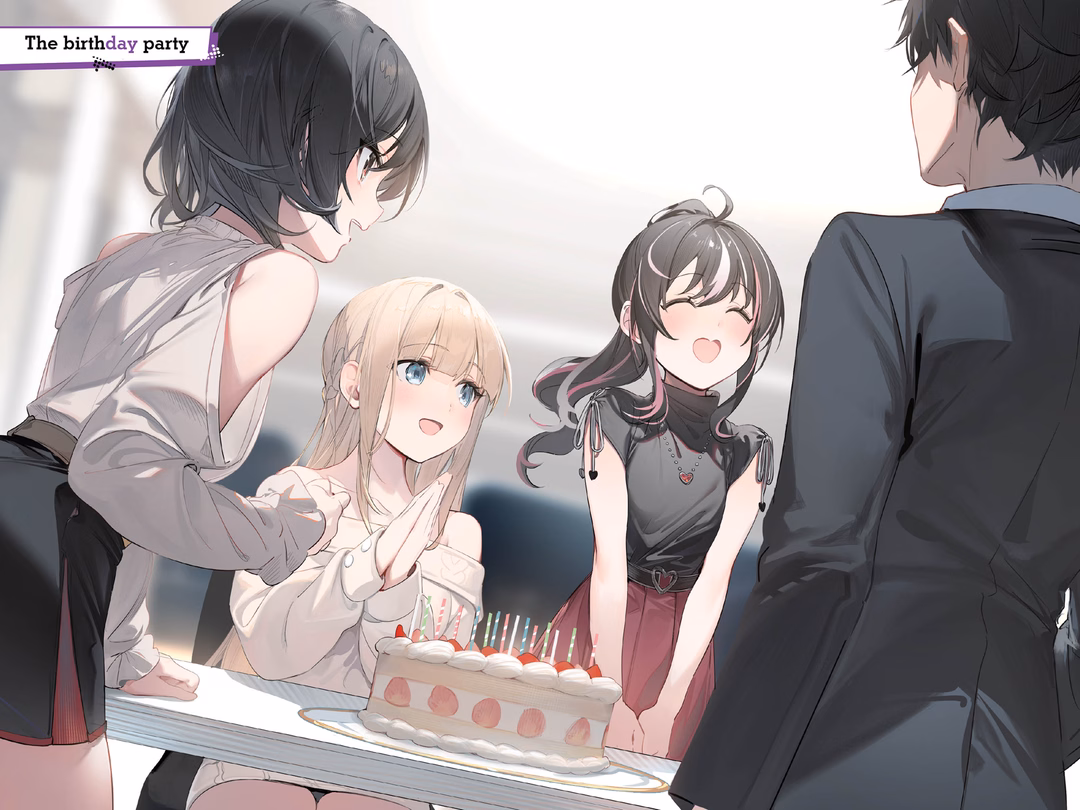 “Happy birthday, Yui!” Natsunagi called in a singsong voice. Several party crackers burst, and then applause filled the room.