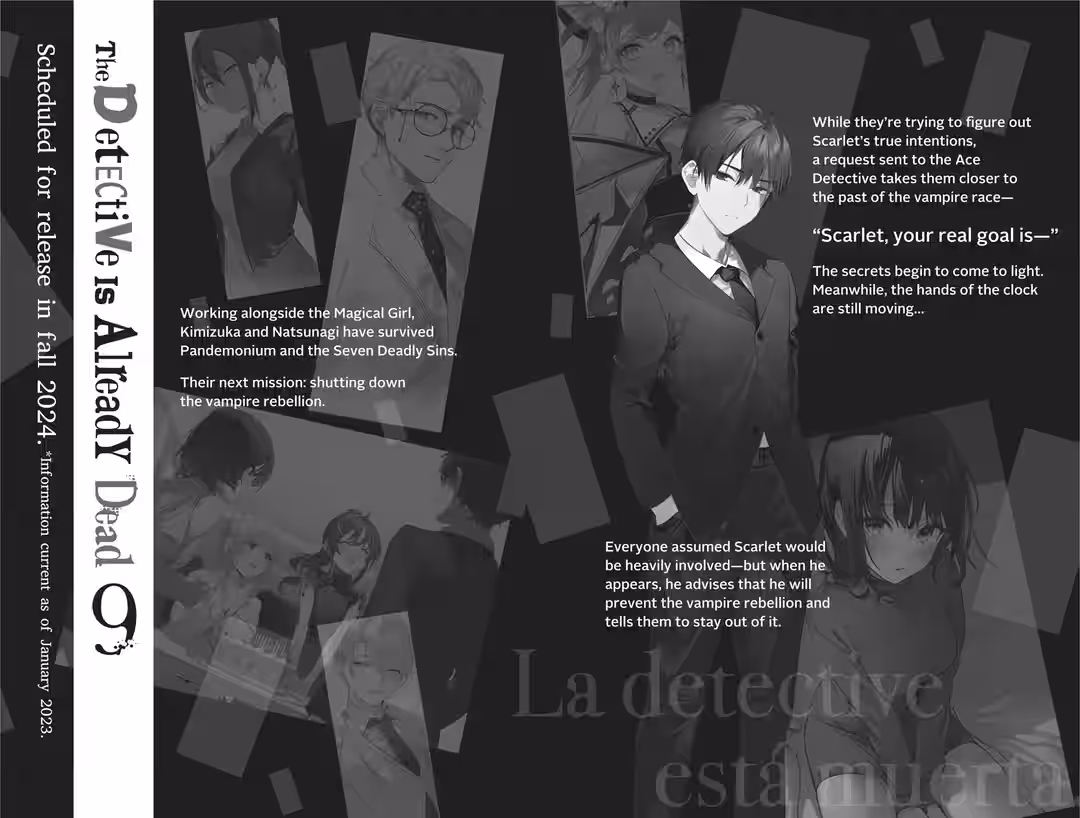 And of course, media franchises are formed by many creators working together. The Detective Is Already Dead has been lucky enough to have multiple manga series based on it, and it’s had a TV anime as well. They’ve decided to make a second season of the anime, and I can really feel how everyone’s efforts are expanding the story. There are many occasions where I’ve been influenced by the manga series and the anime and have imported background info or certain production effects back into the novels.