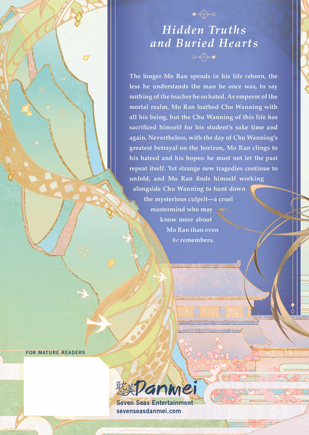 Chu Wanning didn’t believe in love, nor in chance encounters, and he certainly didn’t want to go chasing after any such thing. If he were to arduously gnaw through the cocoon, getting cut and scraped all over in the process, and come crawling clumsily out only to find no one waiting for him on the other side—what would he do?