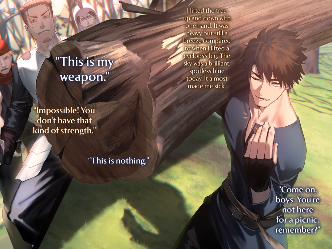 I’d once been an adventurer known as the Giant-Eater. With my superhuman strength, I had all the fame and money and women I wanted. I’d lost them all, for certain reasons, but I’d gained something in their stead. The cold stares of the public—and the privilege of being at the side of the beautiful princess knight. When Her Highness was lost in the depths of darkness, I would be there to pull her back out.