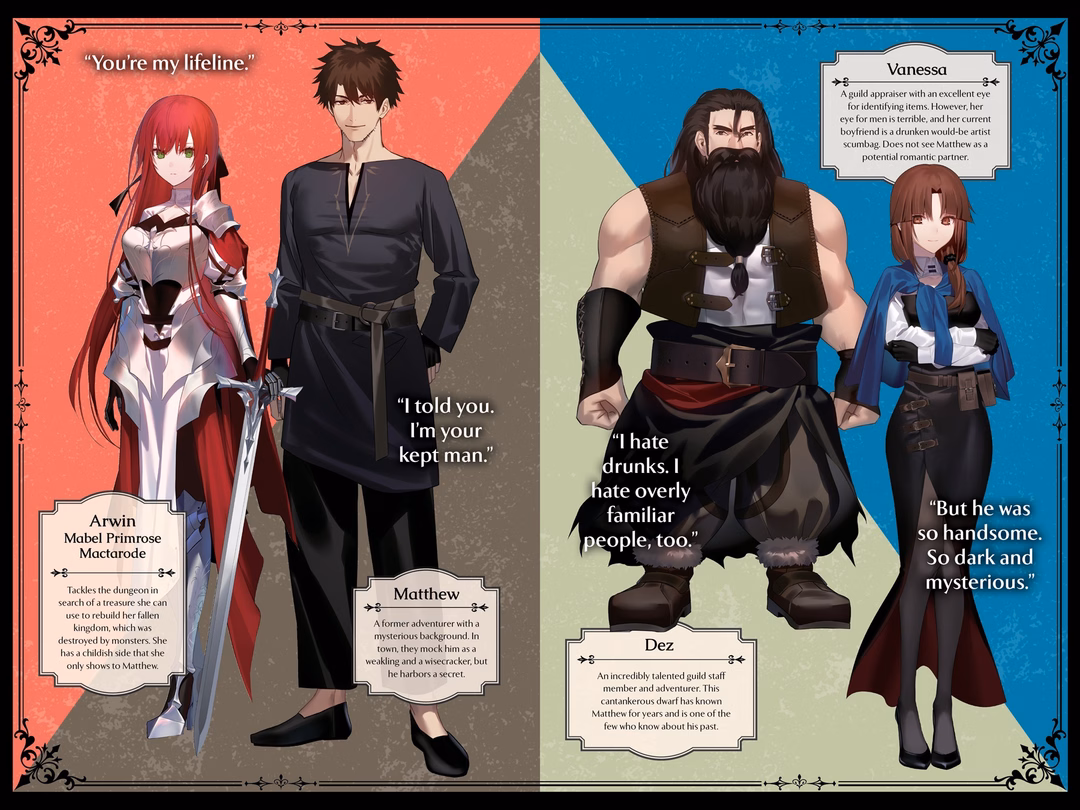 “What’s the problem, Matthew?” asked Arwin, clearly somewhat irritated. Her red hair flowed down her back, and her jade-green eyes were piercing: our lovely princess. The femme fatale herself. She was also the leader of Aegis, one of the foremost adventuring parties in the city. “It’ll only be three days. That should be more than enough for you.”