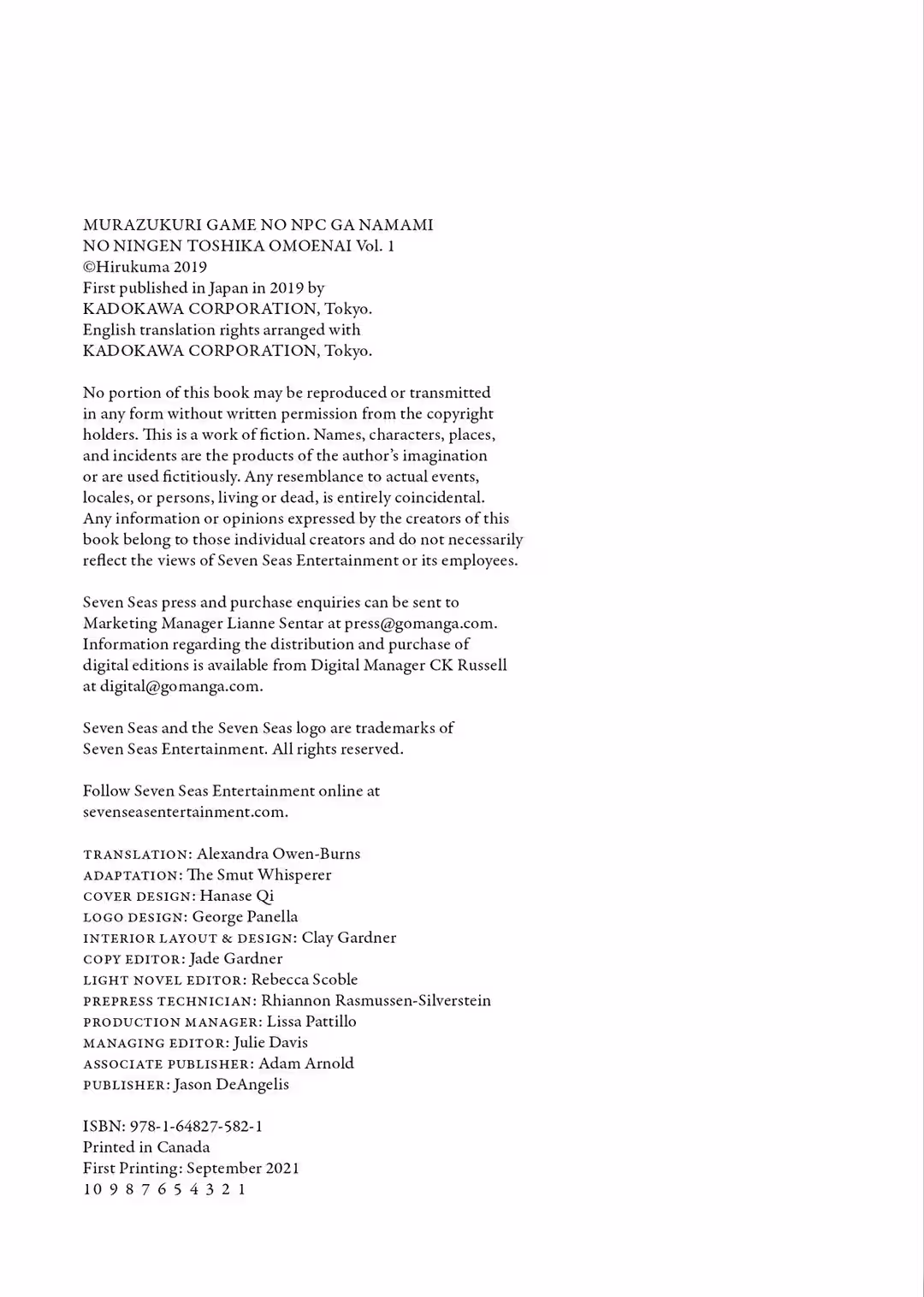 HELLO! If this is your first time reading my work, it’s nice to meet you. If not, it’s good to see you again. My name is Hirukuma, and I’m the author of The NPCs in this Village Sim Game Must Be Real!