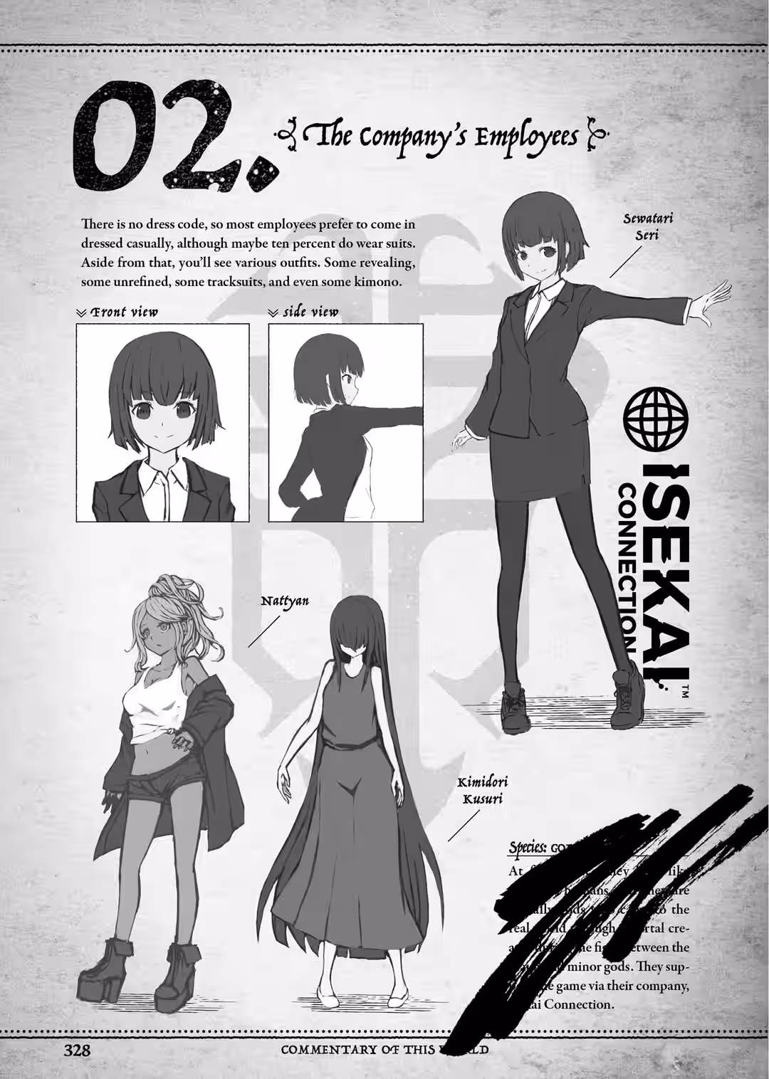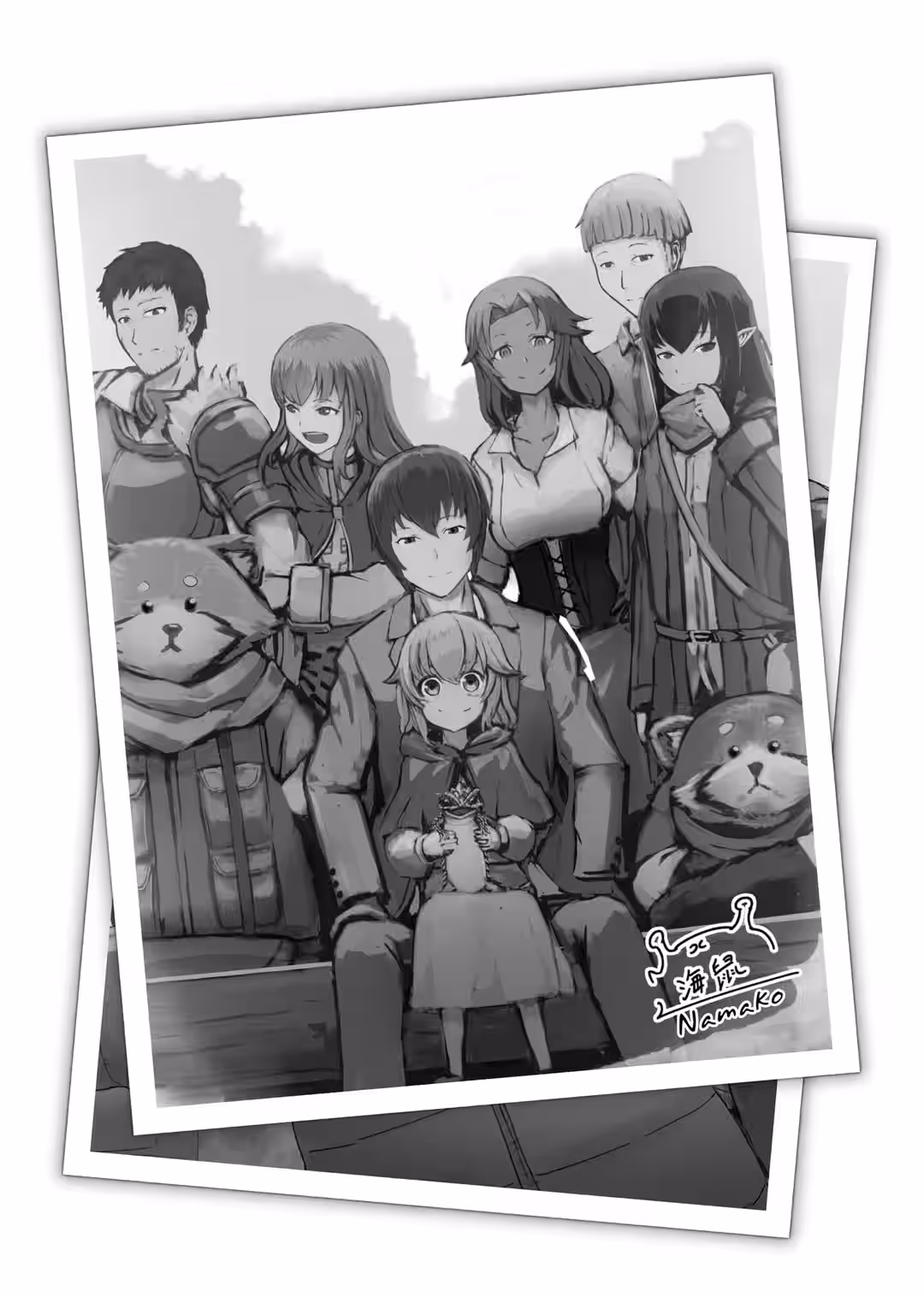 First, to Namako-sensei. Thank you for your illustrations once again. Sorry for all the new characters and monsters you had to draw! I love the way you drew the monsters and Destiny, though, and I have a great time looking over them. Especially the color pages! They’re the best!