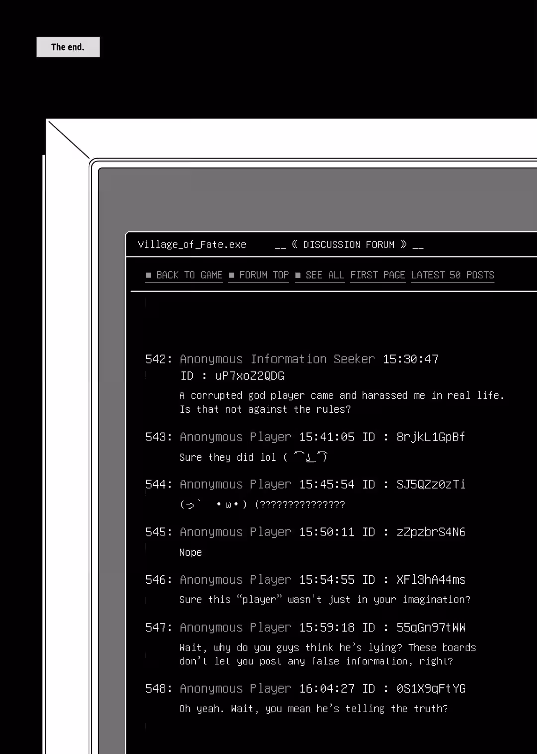 The game often acted independently from the will of the developers, but we couldn’t allow the players to exploit any dangerous loopholes in the rules. On the off chance they did, we had to clean up after them. Usually, these incidents were the fault of other departments, but this time it was us. This couldn’t happen again. I needed to deal with it now.