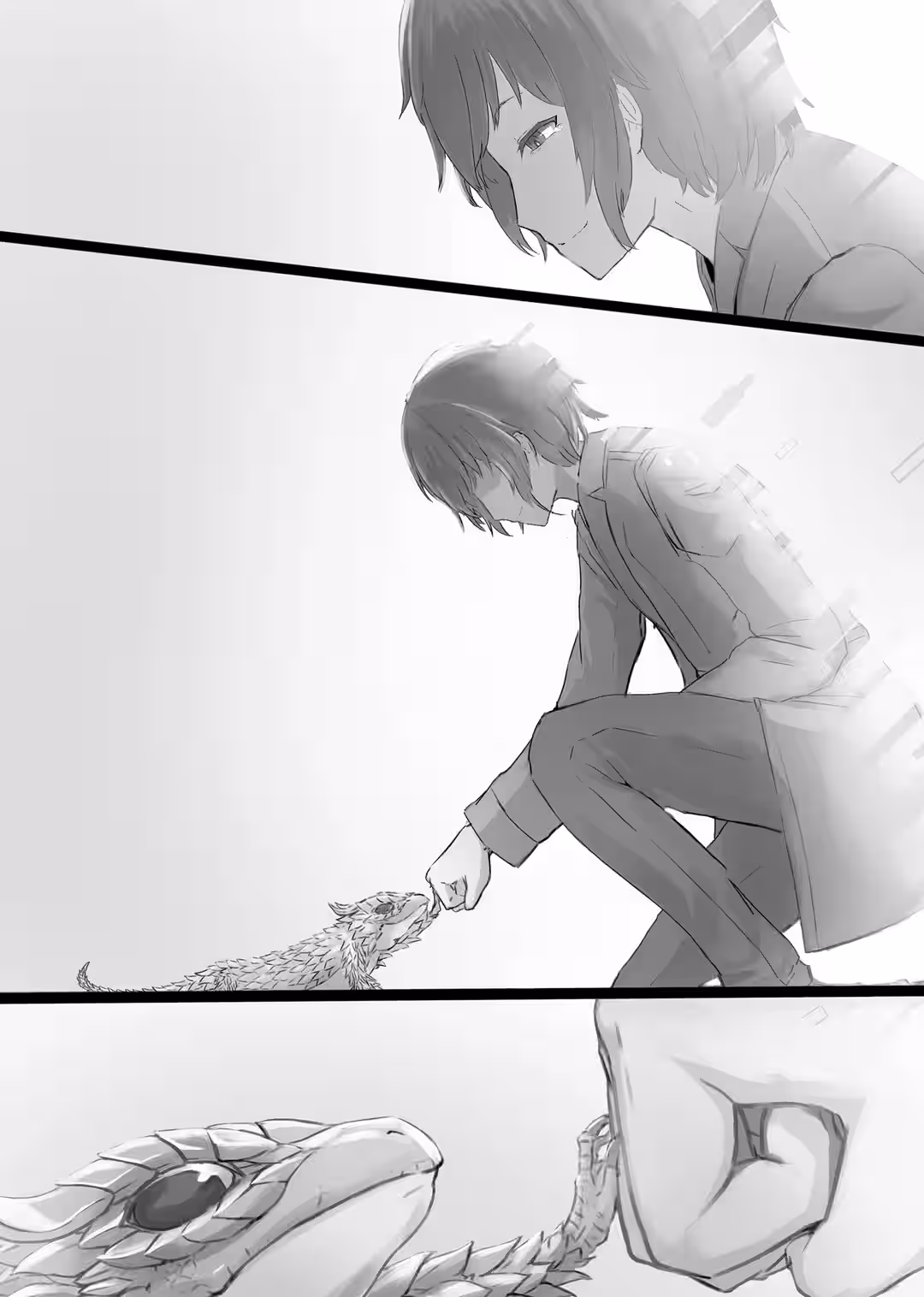 “What was that? Hey, quit it!” I snapped at the lizard tugging on my sleeve next to me. “You hungry? You sure eat a lot for something so puny. You—wait.”