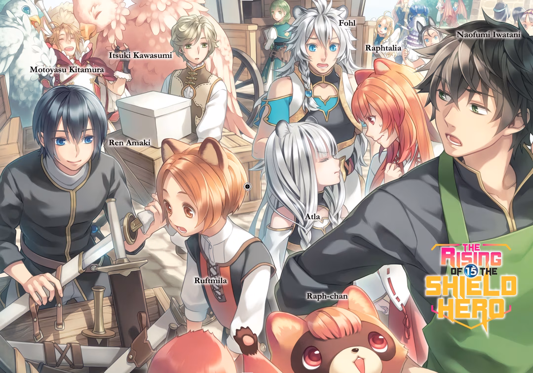 “Naofumi!” Ren, the one calling my name, was the Sword Hero, summoned from a different Japan than the one I came from. His full name was Ren Amaki. The other guy with him, Itsuki, was the Bow Hero, and just like Ren and me, he too had been summoned here from a different Japan. His full name was Itsuki Kawasumi. Rishia was a heroine-level, emotional rollercoaster of a girl who always followed Itsuki around.