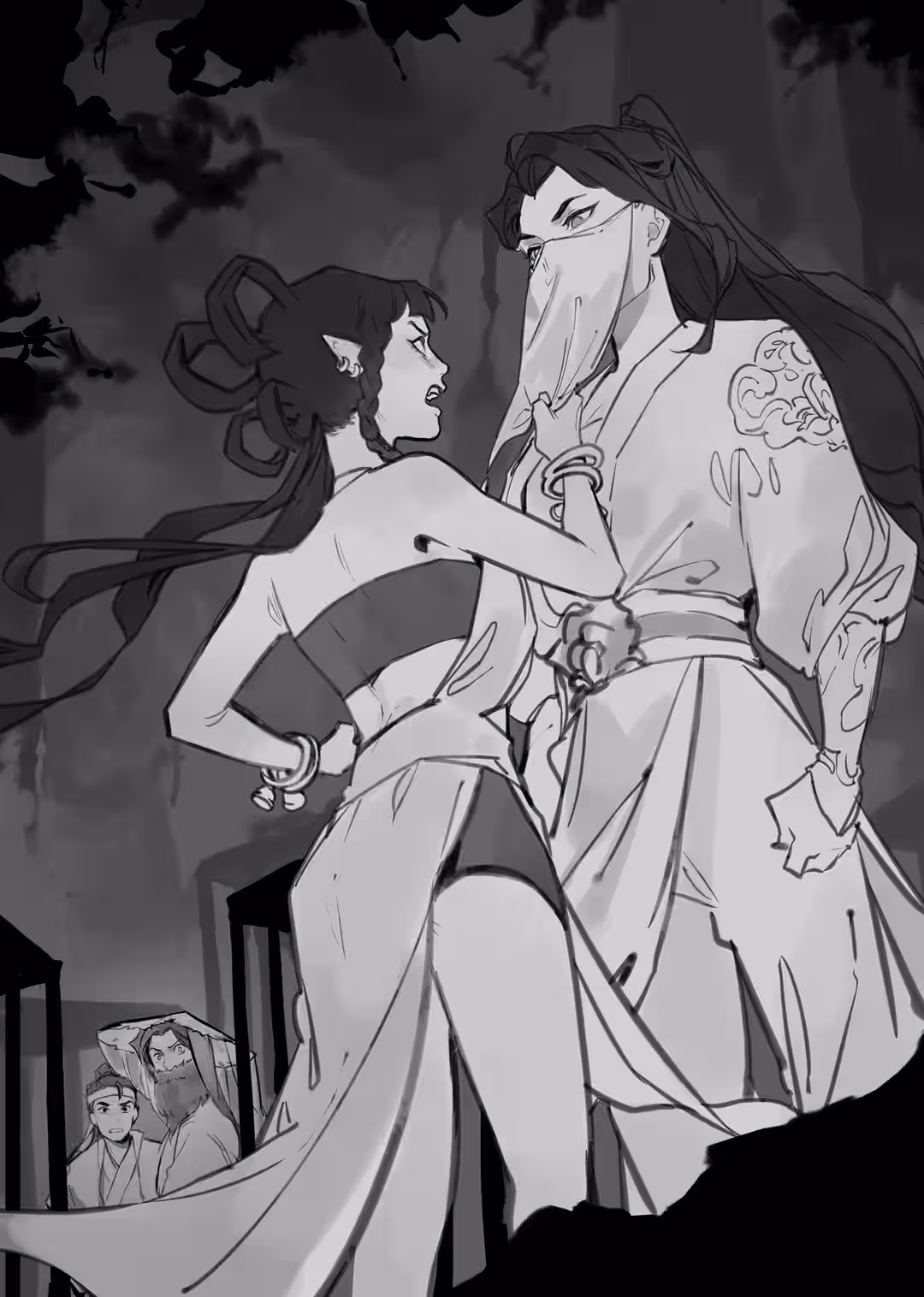 While being greeted by a sweet-smelling maiden was indeed a wonderful thing, Shen Qingqiu unfortunately couldn’t enjoy it, especially because Ning Yingying had developed quite nicely. No longer was she that dainty and delicate little girl of the past; sometimes her chest would accidentally brush against him. In fact, it did so until Shen Qingqiu, face still expressionless, was streaming with cold sweat. He had once again thought of those two long chains of posts in Proud Immortal Demon Way’s comment section—the ones demanding Shen Qingqiu’s castration.