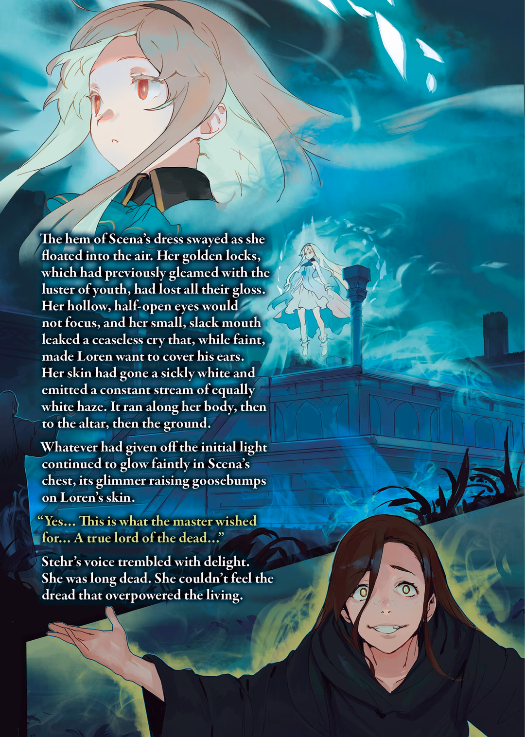 More importantly, Miss Scena. Of all things, the effects of some enchanted item turned her into a Lifeless King: the highest rank of undead, with whom it is said every encounter proves fatal.
