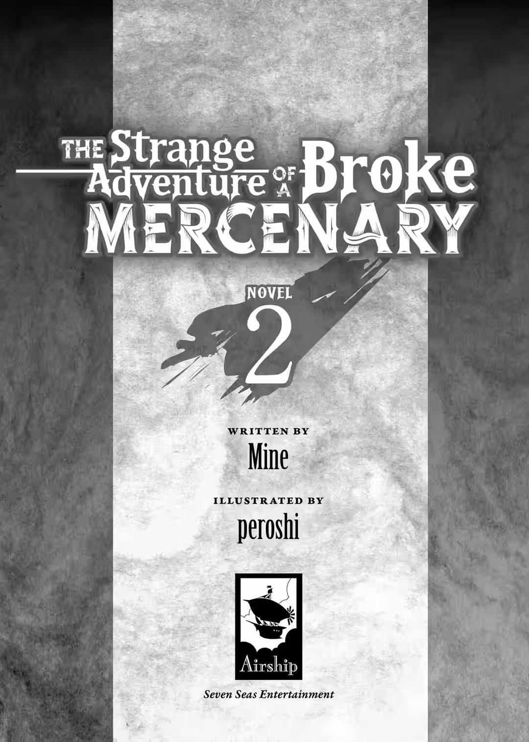 Now then, on to The Strange Adventure of a Broke Mercenary. It’s thanks to your valued patronage that we received a second volume. If anyone is reading this in a bookstore before taking it to the checkout, I’m begging you to take it home with you. I can only hope that this tale of a skilled mercenary who’s still naïve as an adventurer and the priest who follows him will manage to alleviate your boredom, if only a little.
