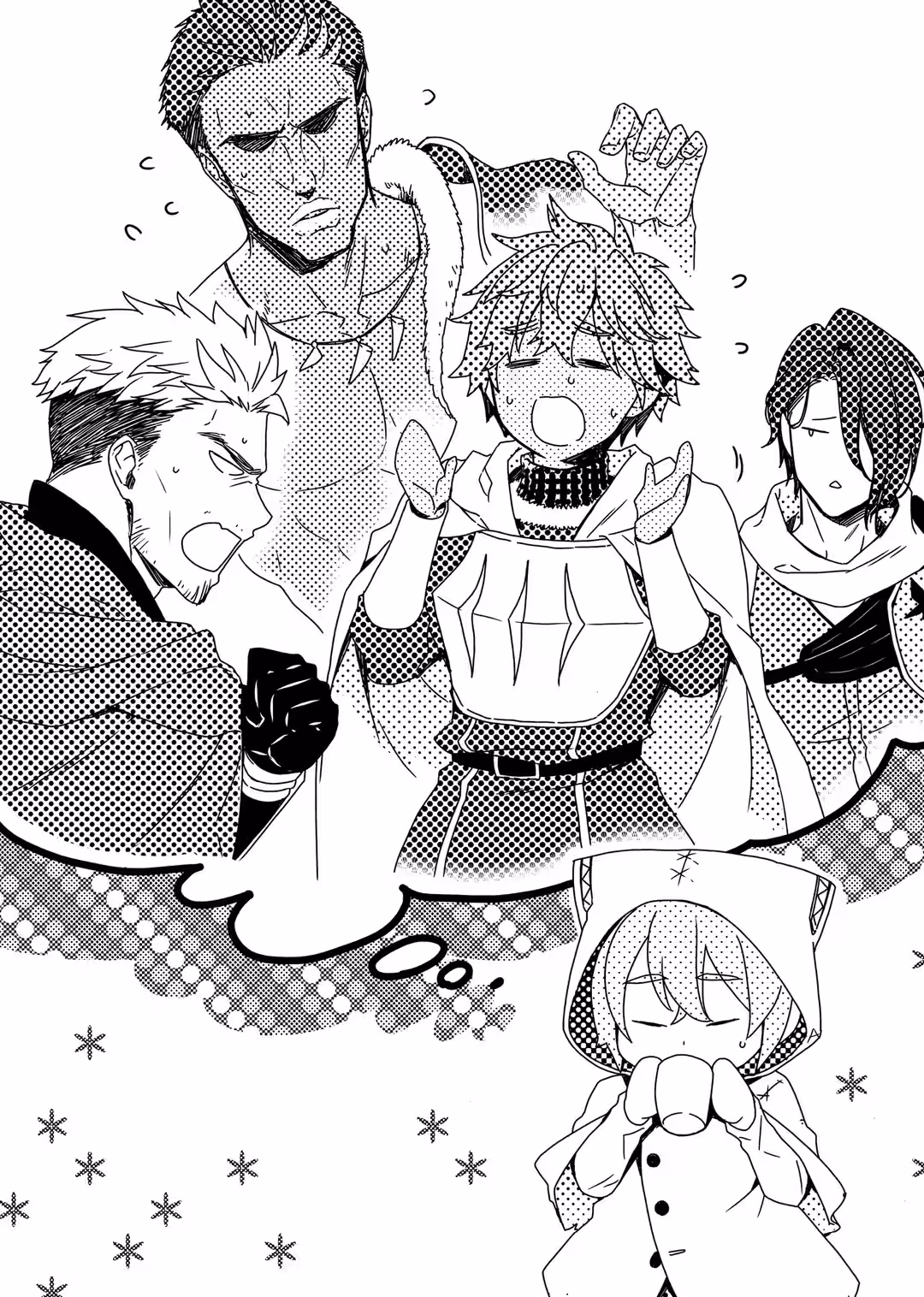 Their reactions only made me more curious, but when I peeked over at them, they averted their eyes. Rattloore and Rickbert cackled. I felt a little sorry for them, so I decided to keep quiet. Seizerk and Bolorda seemed to be okay for now, anyway.