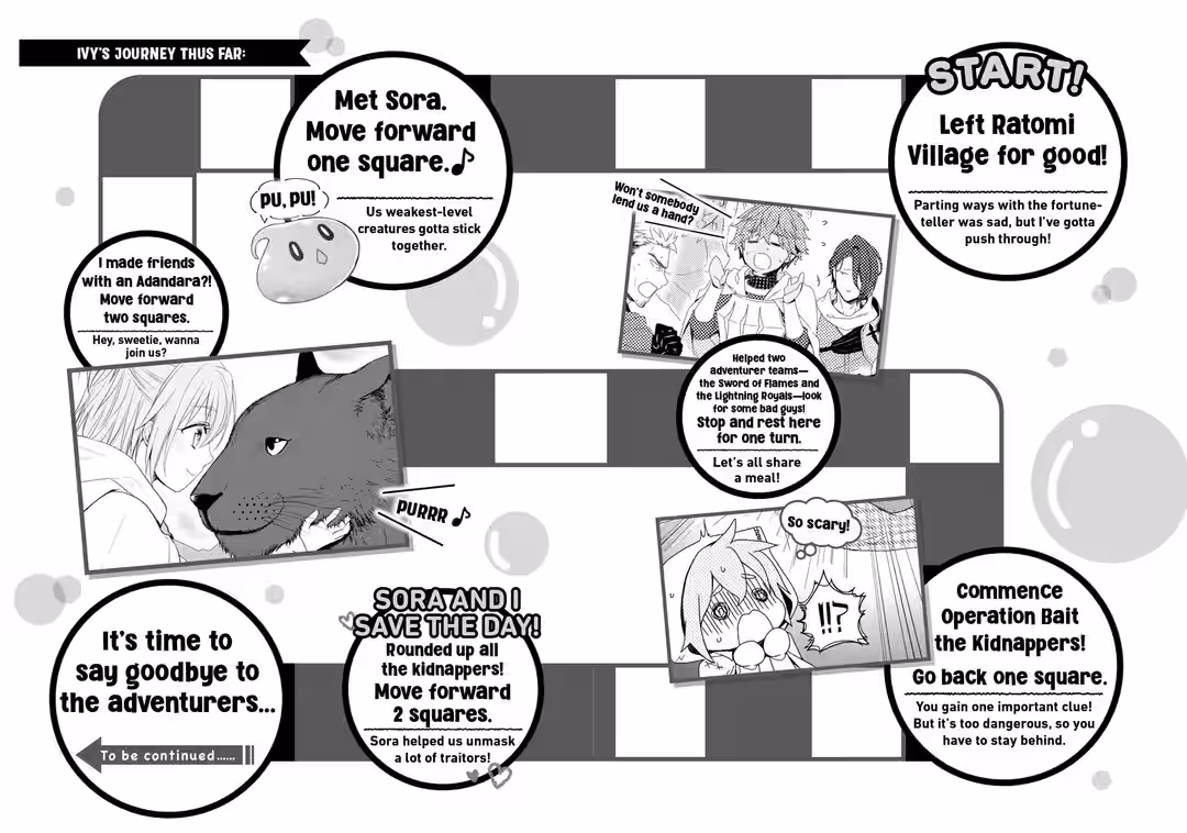 Also, Ivy acquired more companions. Flame was born! I had the idea that Sora would give birth to Flame ever since I started having Sora eat red potions. To be honest, I kept going back and forth in my mind about when I’d have Sora birth Flame. So I’m really happy Flame has finally joined the party in this book. I hope you have a good time traveling with Ivy now that her party is bigger and more lively.
