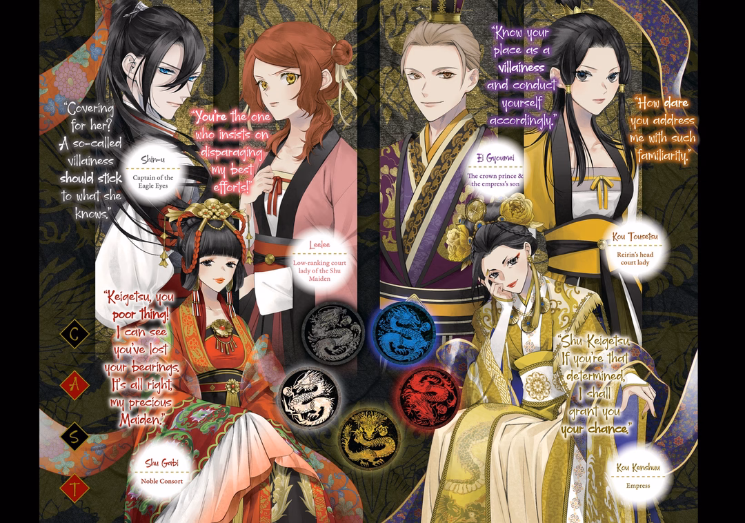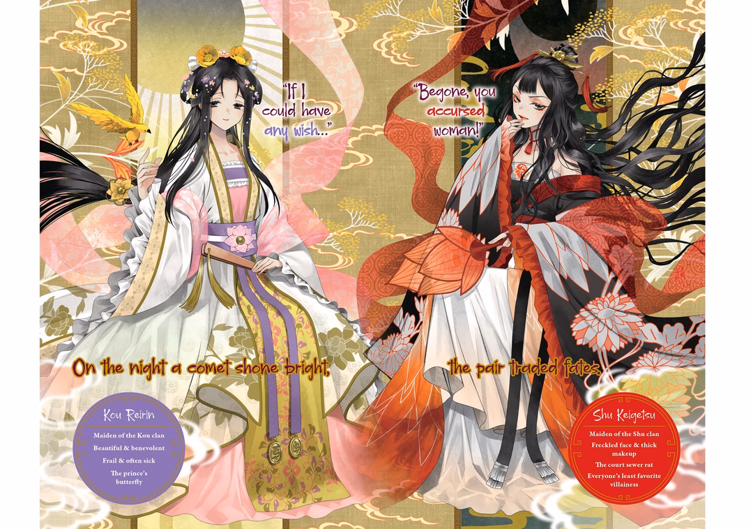 The court ladies’ eyes held an unmistakable glint of disdain. The subject of their gaze was the girl standing next to Reirin, a Maiden by the name of Keigetsu.