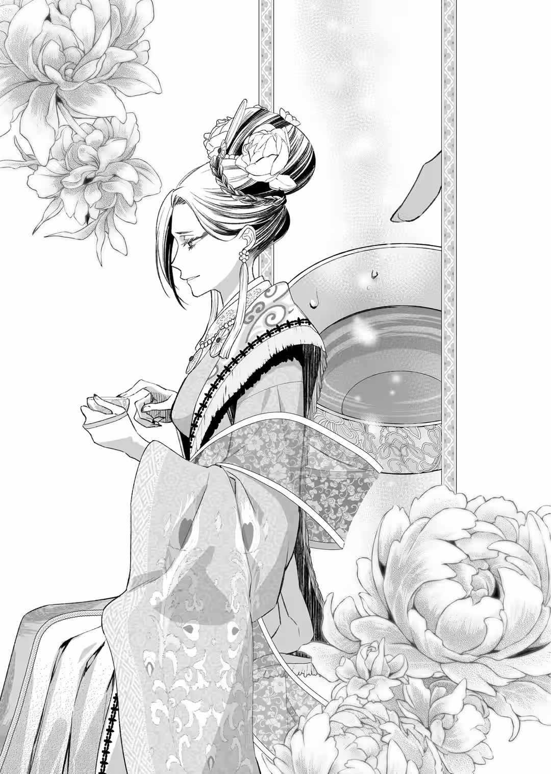 The other court ladies deferred to the ever-aloof attendant, palpably relieved by her arrival. Having snapped back to her senses at last, Keigetsu chewed on the inside of her cheek.
