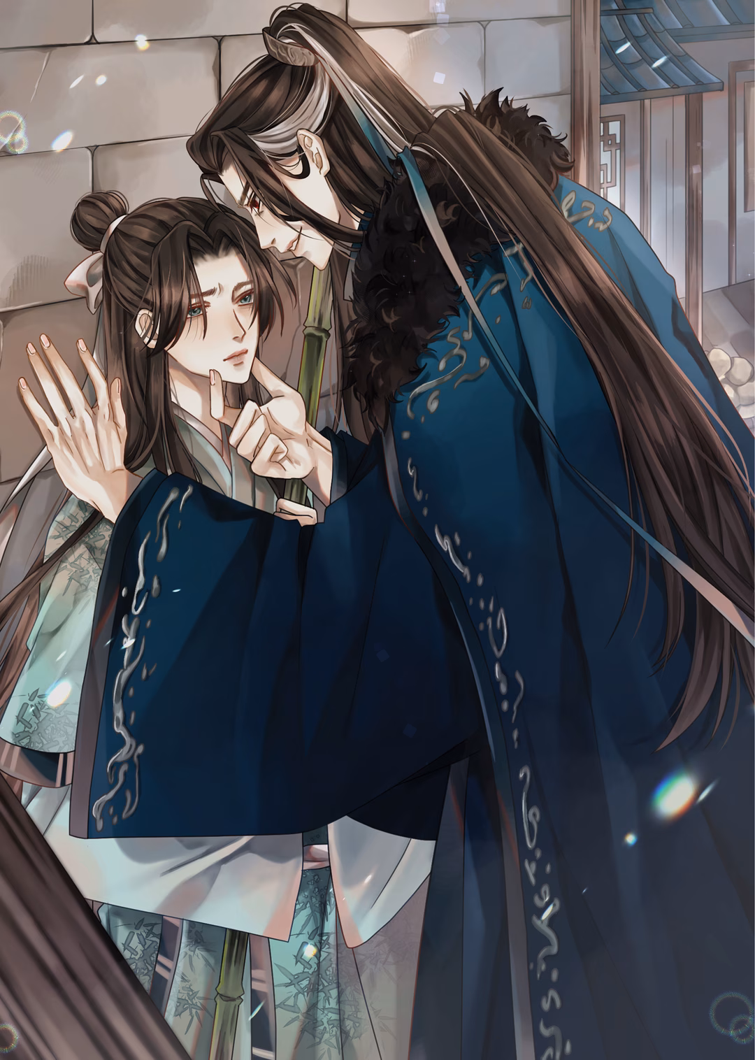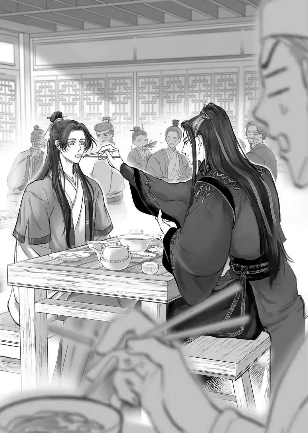 During that time, Yu Shengyan continued his training according to Yan Wushi’s instructions and also traveled to many places. His progress put him far beyond where he’d been before; he’d entered the ranks of first-class martial artists within the jianghu3 long ago. But inevitably, because he hadn’t seen his master in ten years, there was a sense of estrangement and unfamiliarity between them. Moreover, Yan Wushi’s martial expertise had only grown more profound while he was away, and so the awe within Yu Shengyan’s heart had grown deeper along with it. So much so that the usual bold and untrammeled behavior that others saw from him became restrained and tentative in his shizun’s company.