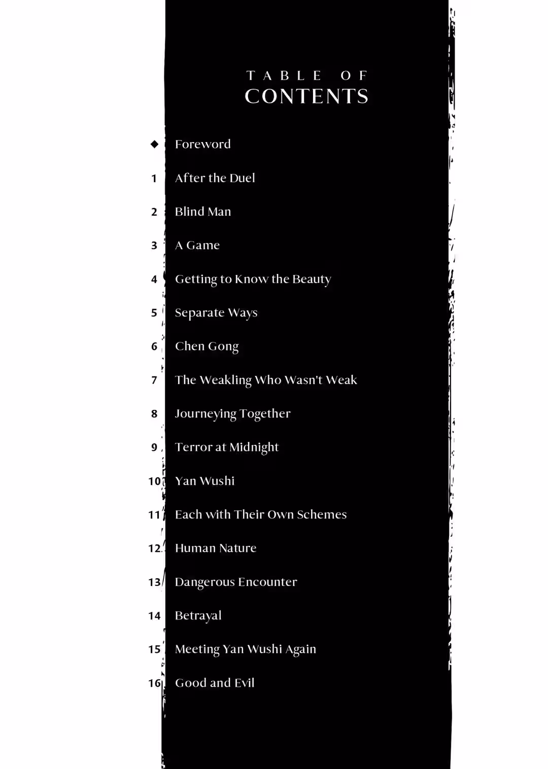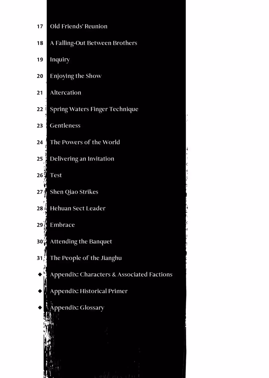 To my dear readers, I’m grateful that we had the chance to meet. I’m grateful that you flipped open this story to enter the jianghu of ancient China, to witness the chivalry and bloodshed within, as well as the story of a man who fell from the summit down to the lowest point of his life. Who climbed out of that chasm, step by step, through his own efforts, back to the pinnacle of the world as a martial grandmaster of incredible strength.