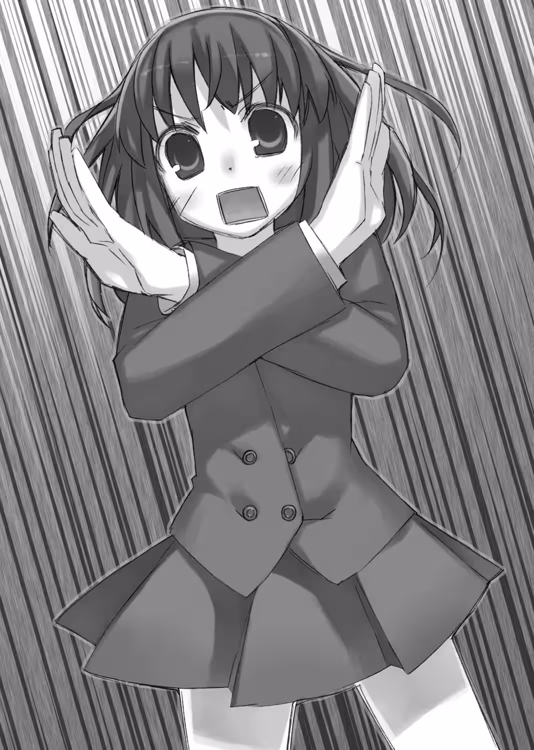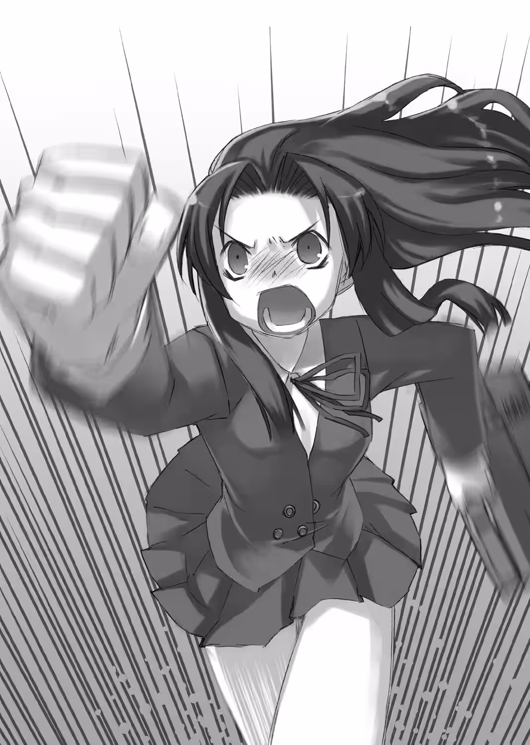 He’d seen the Palmtop Tiger up close. Even though she was terrifying, she was still a beautiful girl of the highest caliber. He felt he could kind of understand why all his upperclassmen called her by that name. She’s scary—you don’t want to get involved with her, you don’t want to make her angry, but you can’t just be afraid and ignore her.