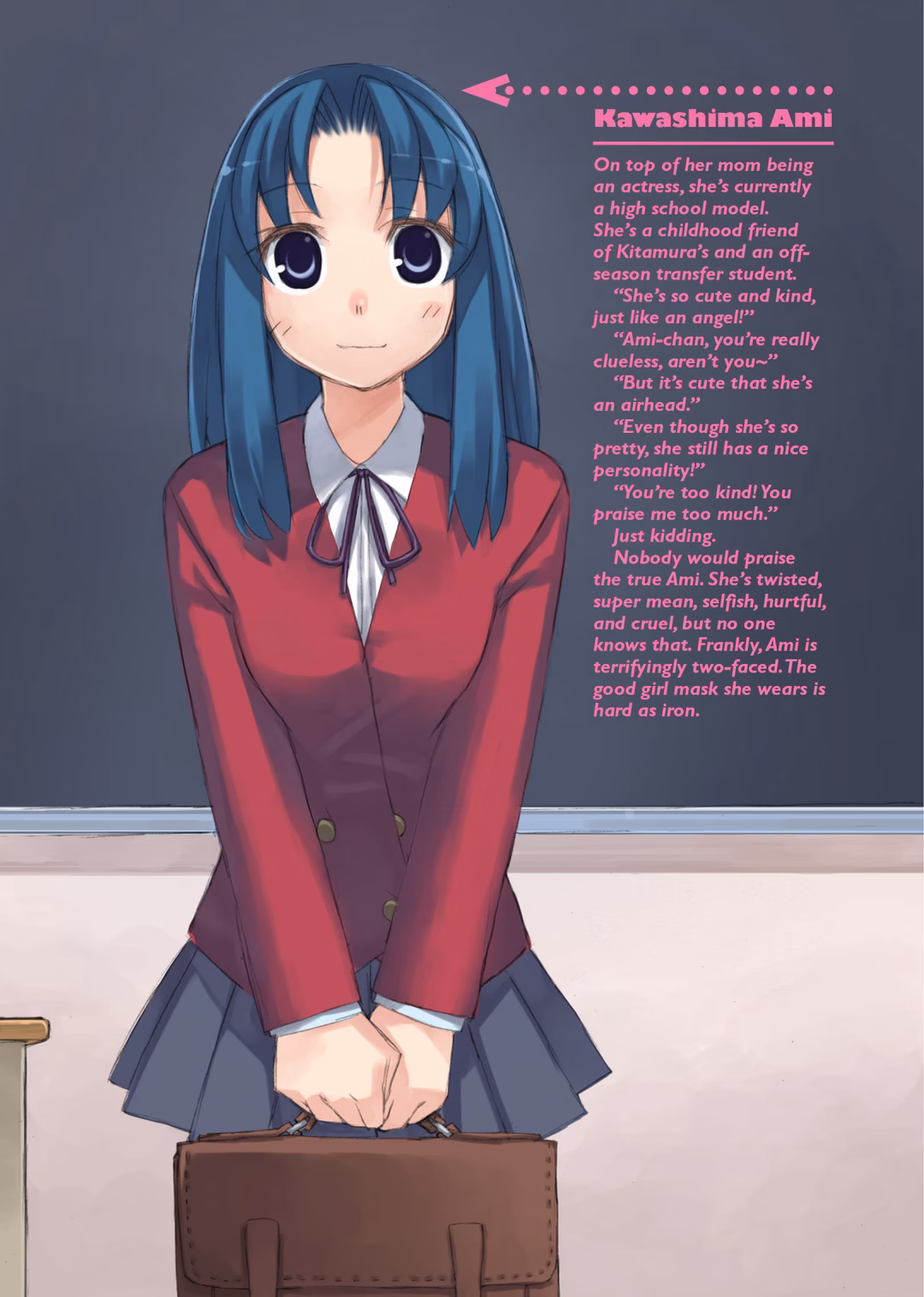 “Oh. I see,” Ami said, her voice thick with laughter. What didn’t kill her just made her stronger. She really wasn’t a normal person. “Aisaka-san. You have anxiety about being away from Ryuuji? Right? You’re thinking I’m going to steal him so you want to come along? After all, ‘Ryuuji is miiiiiine’…right? ♥”