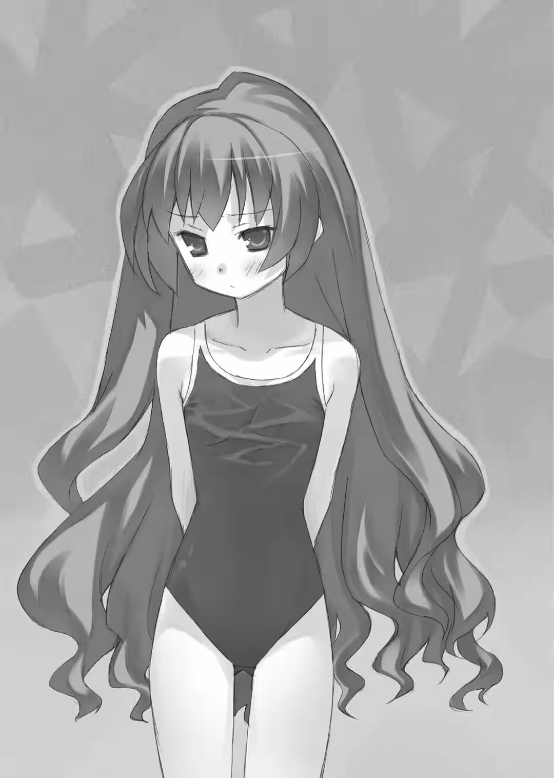 Taiga, who followed in after him, caught her breath and took a quiet step back toward the wall.