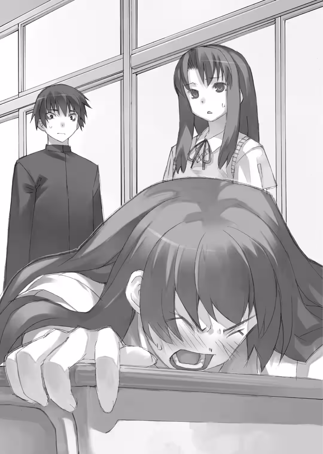 “I wonder what’ll happen…” Taiga mumbled. She sounded tired and unhappy but wouldn’t go home. She was probably as uneasy as Ryuuji. Despite what she’d said earlier, she likely felt it was her fault, too.