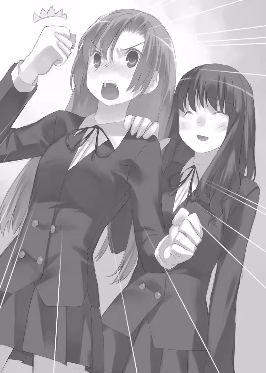As she writhed, tears thicker than blood fell down the cheeks of the completely impeccable student council president. Sumire shook her head like she didn’t accept them, but no matter how she shook them off, the tears wouldn’t stop coming. Her emotions and her words wouldn’t stop flowing out either. She screwed up her face and continued to shout with her dry throat. She continued to cry out from the emotions she couldn’t help but have.