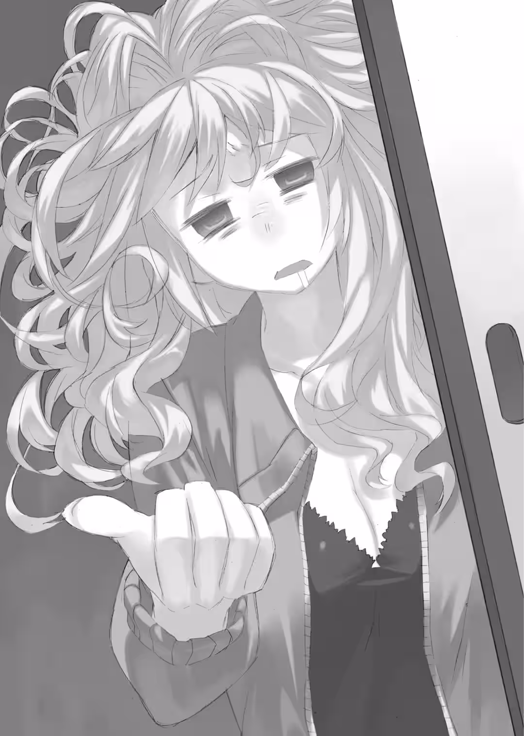 Taiga suddenly stopped on her own. Ryuuji was gripping her uncapped lip balm right in front of her eyes. Taiga looked at the smooth and white lip balm, which had been extracted from two nostrils. It glistened innocently. She had a strange expression on her face as she continued holding the lip balm’s cap. She bit her lip and looked up at Ryuuji’s face.
