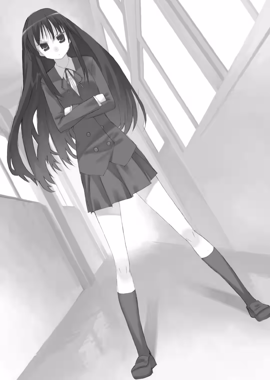 She stood up and changed her mind. I’ll leave it alone, she thought, and she went back to picking up bundles of printouts from the floor. But then she stopped again. She noticed the weight of the notebook she had stuck into her pocket. She remembered what that person had looked like—the one she hated. That person had been frozen to the spot and expressionless just like Minori had been just now. She wasn’t sympathetic. She wasn’t, but…