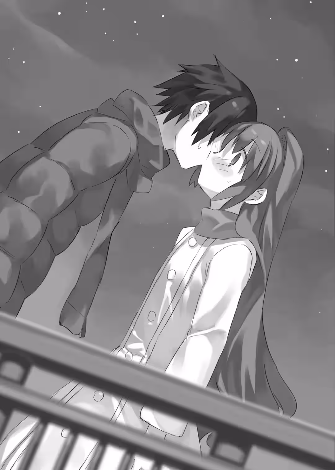 He knew something special was likely to happen between Aisaka Taiga and Takasu Ryuuji on that day. He wanted it to happen, which was why he wasn’t worried to hear they didn’t get home at the time they normally did, that was good. He unconsciously thought of Takasu Yasuko as parent and guardian to both Ryuuji and Taiga, and so he hadn’t lied about where they were.