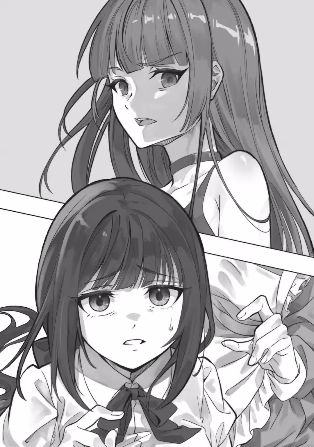 For this afterword, I’d like to discuss the process of writing this volume with you all. First of all, the volume’s cover is much different from past ones, which I think makes it stand out more. It may actually be my favorite yet. Getting to see Angelica (or rather, Angie) and Clarice back when they were still on good terms was kind of healing for me. Envisioning it was pretty fun.