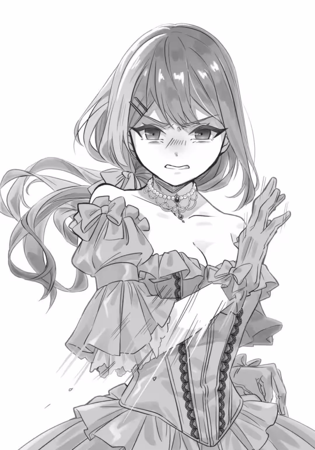 His voice had grown quiet and timid, which Dorothea couldn’t abide. She shot up from her chair, and the rattle of a chain echoed around the room. “We’re married now, so you must stop using such titles with me!” She probably didn’t like how meek he was being.