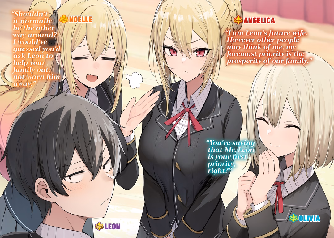 My fiancées had practically forced me to return to my parents’ home for some rest and relaxation during spring break, so I entrusted Marie and Cleare to conduct an investigation of the academy on my behalf. They were supposed to be collecting whatever intel they could on the characters who appeared in the third installment of the otome game we were living in. Instead, under the pretense of conducting experiments, Cleare went and turned a male student named Aaron into a female one.