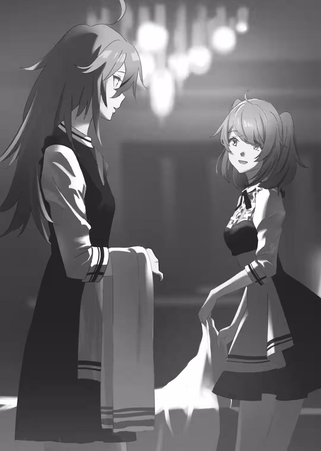 Vivy had asked because the number of people in attendance didn’t match what she had recorded last year. She had thought she’d asked an inappropriate question before Momoka’s answer, and she had been about to reexamine her calculations, but instead she smiled. “Congratulations, Kirishima-sama! And you too, Momoka.”