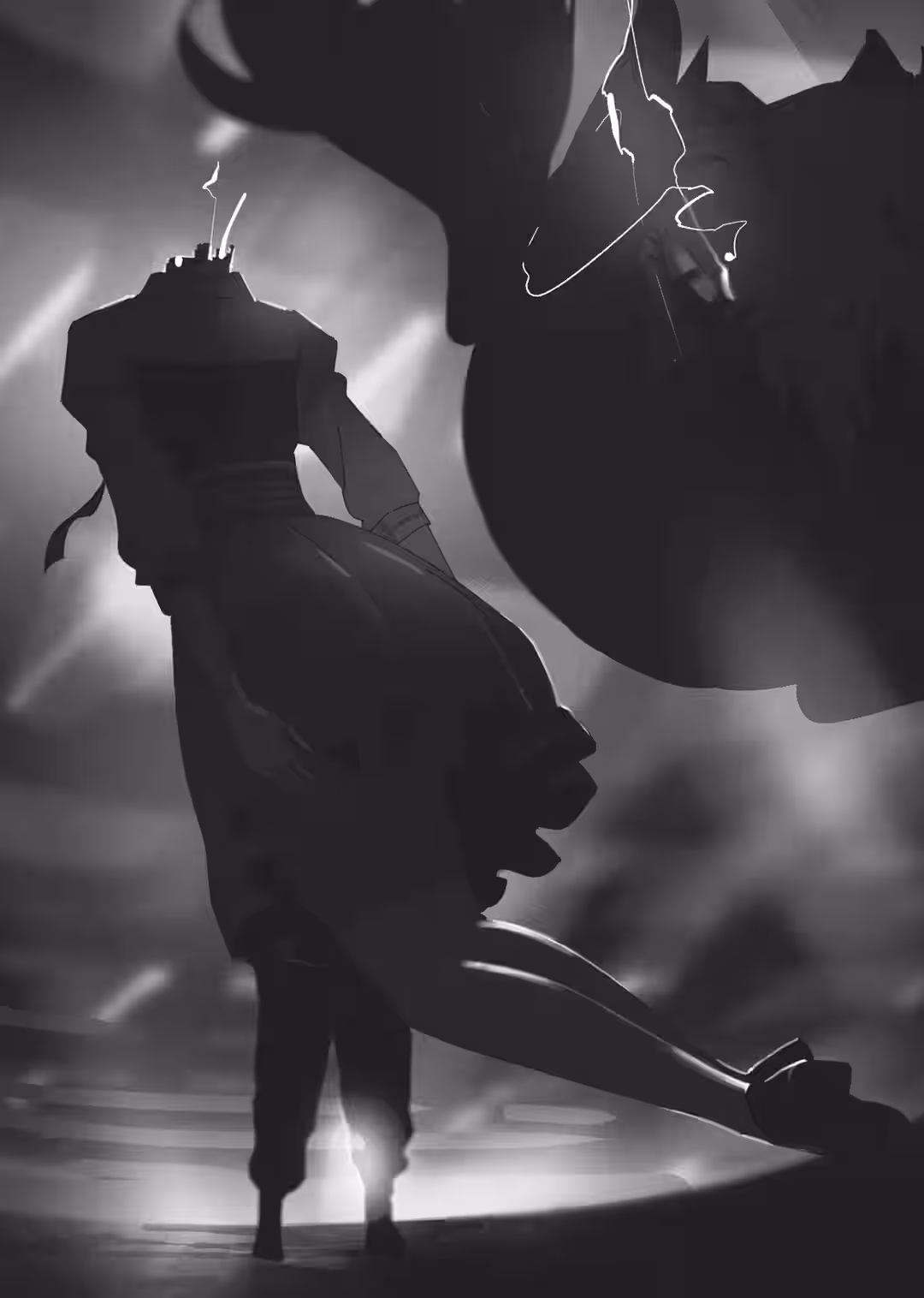 “Ah!” A sudden blast cut through her voice as she tried to continue her tour for the guests. It made her sensors tremble and sent her crashing into a wall, her consciousness flickering.