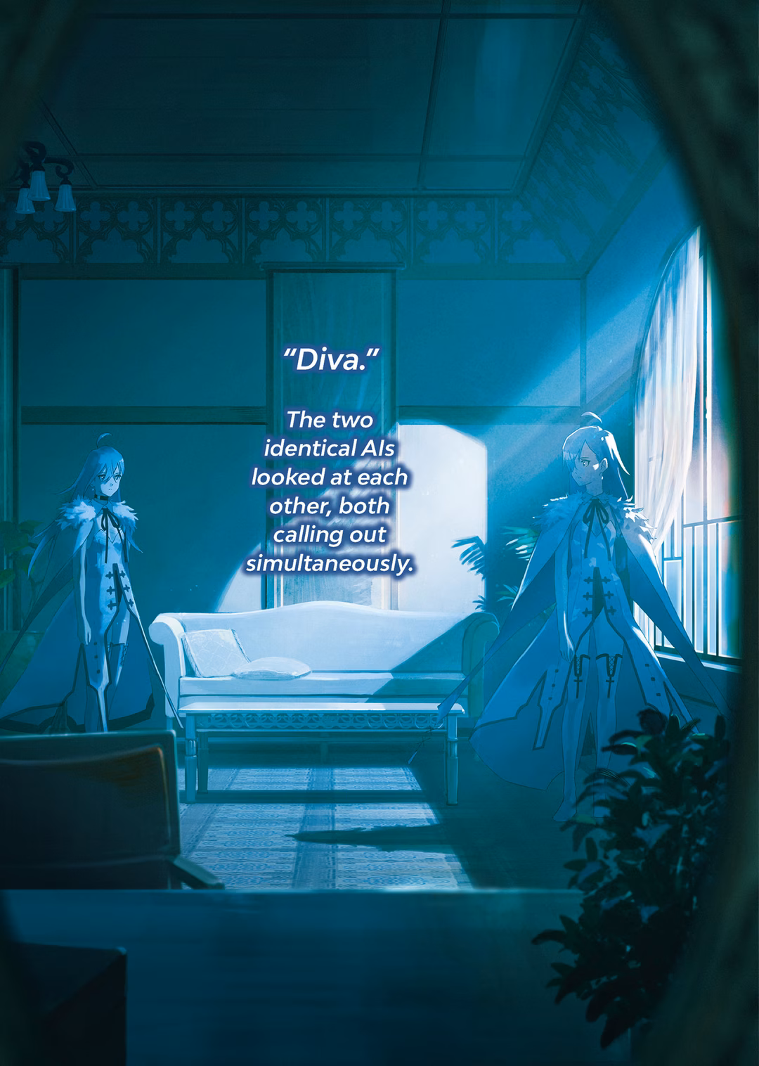 “You would have been destroyed if I did. A raging mob would’ve gotten their hands on you for sure, and I can guarantee they’d break you as a sign to other AIs. That would be a problem. After all…” Matsumoto trailed off, his eye camera half-shut and full of meaning. Diva waited for what he would say next. “After all, I’ll need you to keep being a songstress, like Vivy wanted.”