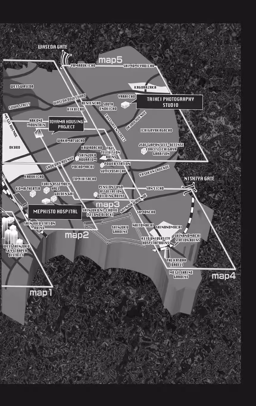 Some shadows reached straight and tall. Others slanted against the horizon. During the day, the countless fissures running along the walls plainly pointed to a future time when a grotesque tragedy would befall Shinjuku.