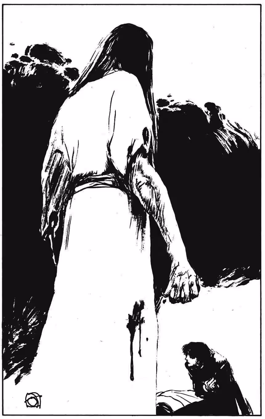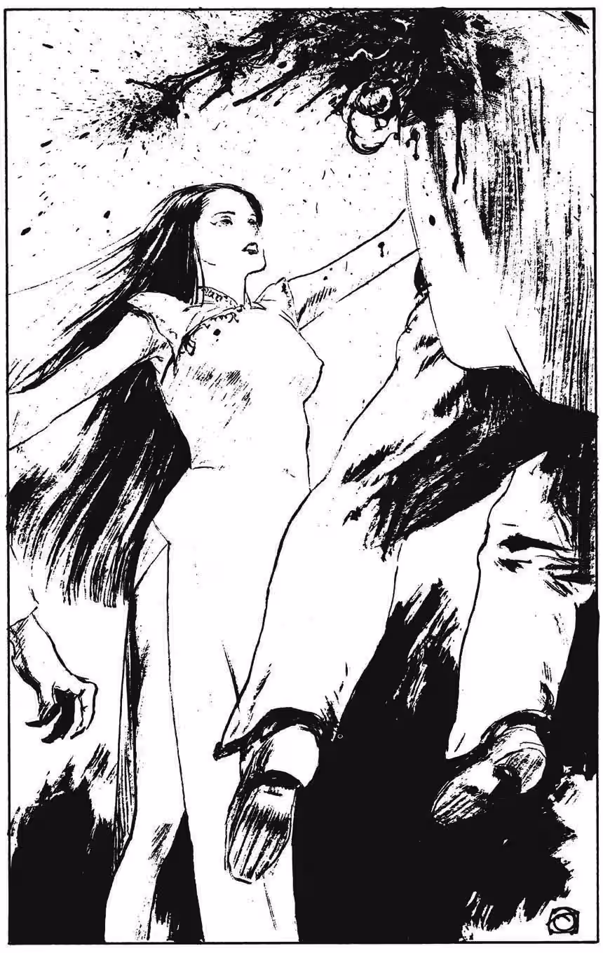 She licked her wrist. The blood stopped flowing. She cast her eyes down at the pool of blood at her feet, then spun around and dashed off into the darkness.