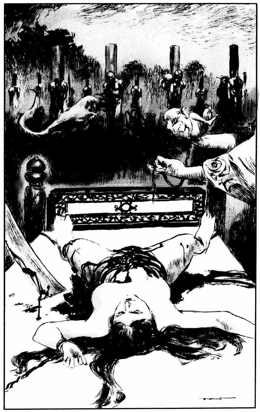The heads of the three should have toppled to the floor. But they continued onward, not a mark on their necks, the murderous vibe brimming from their expressionless faces.