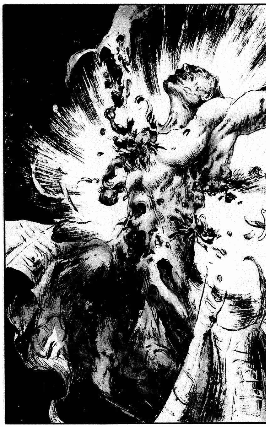 The invisible threads stretched around a space make it an extension of his mind, that can be activated by a mere thought. The same as the qi that expands from the body and penetrates the surrounding area. As for the latter, Kikuchi has long integrated material from the martial arts into his books.