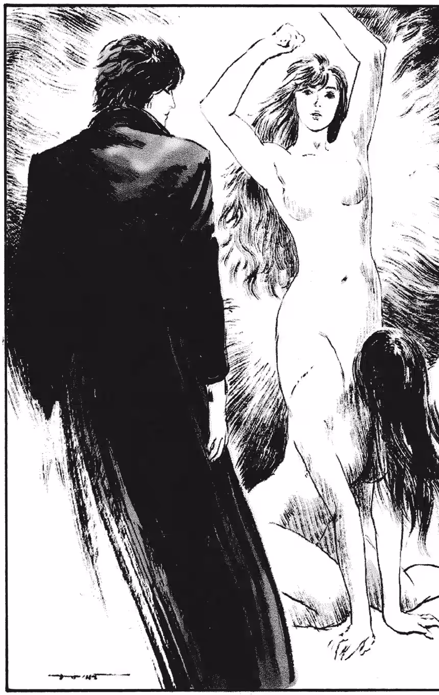 And ruins are where monsters will always find a room to call their own. Yashakiden illustrates another of Kikuchi’s main themes, placing that vampire imagery within the large temple sanctuary that Shinjuku has become.